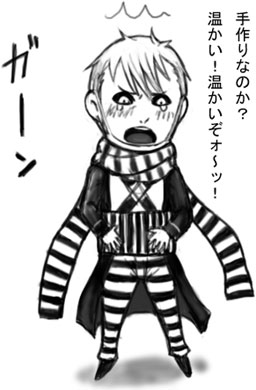 イタリアだと24日は肉とか乳製品を慎んで魚料理でお祝い…とか、TVで見てペッシ大活躍だなあ、と思ってしまった次第です。兄貴ィやメンバーに「釣って来い!」って送り出されて…「大漁ですぜ!」「でかしたッ!」で、みんなでワイワイさばいたり、な暗チメンバー…自給自足で豪華!
