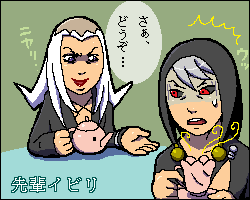 …という訳でそんな2人のイラスト。やっぱりお茶会になってしまいました。リゾットは先輩の意地を見せつけられるのか!?