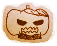 友人が描いてくれたパンプキン兄貴です。スカーフが台座みたい。「あのヘタが兄貴の髪型に見えて…」との事でしたが、その発想が凄い…!こういう置物欲しくなってしまいました**