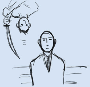 ↓逆さ吊りになった犯人(武道の達人)が日本刀で切り落とした。